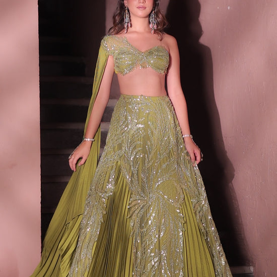 Olive Green Lehenga and Blouse Set